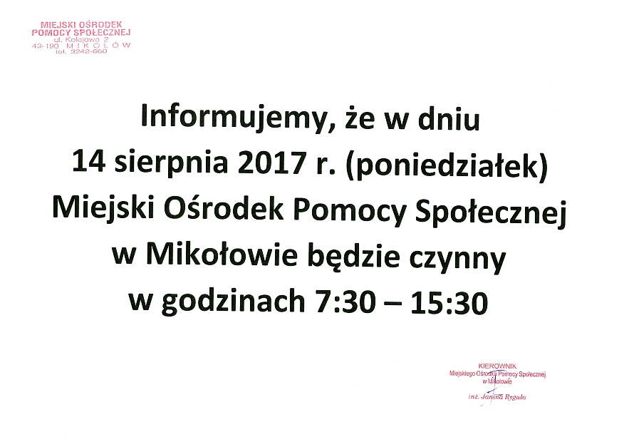 Osoby zainteresowane proszone są o kontakt z Miejskim Ośrodkiem Pomocy Społecznej w Mikołowie osobiście – pok. 106, telefonicznie 32 324 26 92 lub mailowo katarzyna.krzyzaniak@mops.mikolow.eu